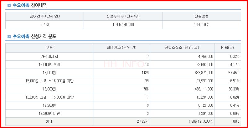 - 수요예측 경쟁률: 1050.19:1로 상위권 경쟁률 기록
