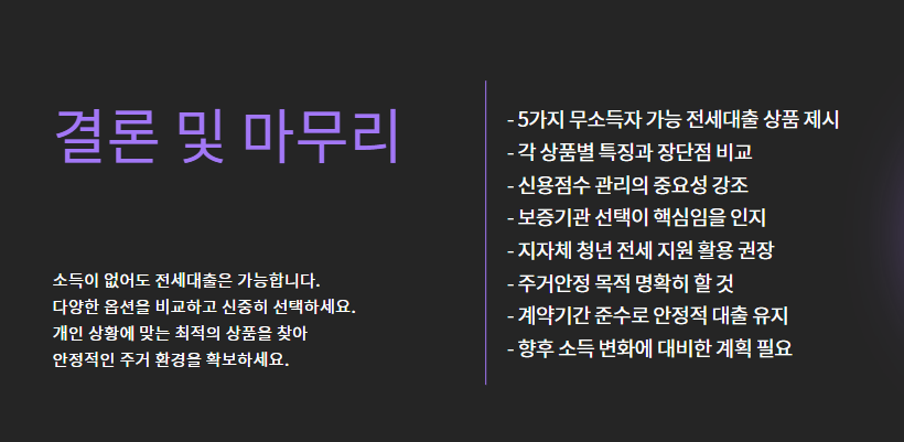 이번 글에서는 2025년 기준으로 소득 없어도 가능한 전세대출 상품 5가지를 선정해