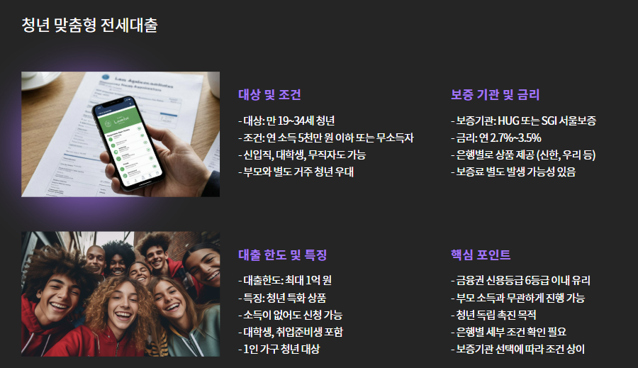 ✅ 2. 청년 맞춤형 전세대출 (신한·우리 등 은행별 제공)
