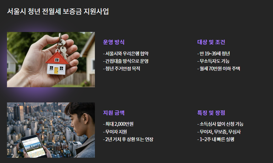 ✅ 3. 서울시 청년 전월세 보증금 지원사업 (간접 대출)