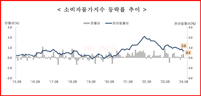 경제에서는 물가가 오르는 것은 당연한 현상이에요. 물가 상승률 2%는 물가가 전년 동기 대비 2%만큼 올랐다는 뜻이지, 물가 자체가 낮아졌다는 의미는 아니에요. 우리나라의 물가지수를 보면 2024년 8월 소비자물가지수는 114.54포인트로, 2020년 1월 대비 14%나 올랐어요.
