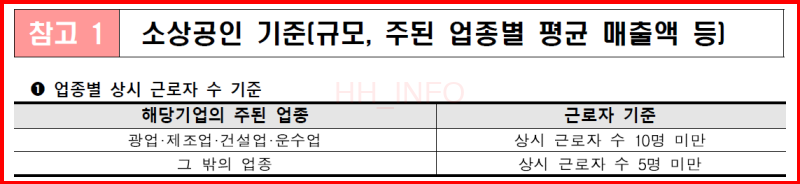- 상시 근로자 수가 5인 이하(제조업, 광업, 건설업, 운수업의 경우 10인 이하) 사업체