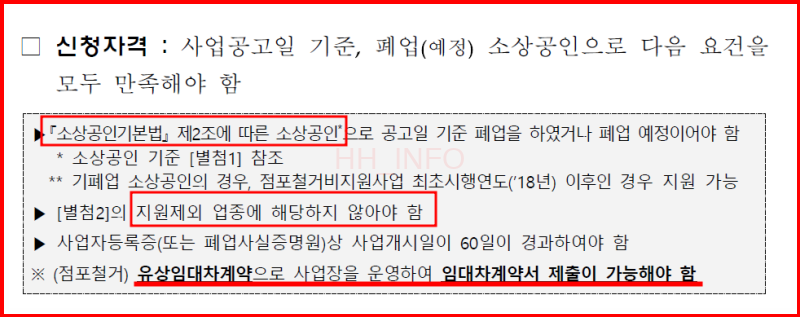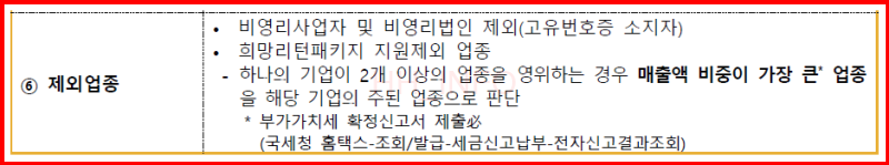 - 제외업종에 해당하지 않을 것 (유흥주점, 비영리 사업 제외)