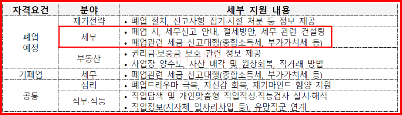2. 사업 정리 컨설팅: 무료 세무 대행