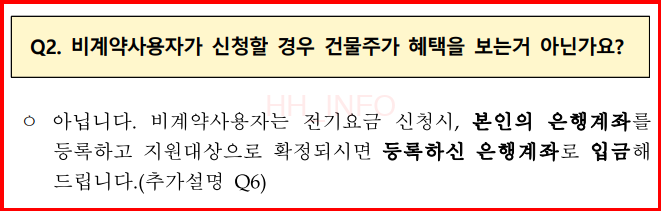- 비계약 사용자(관리사무소를 통해 전기료 납부 등): 현금 환급.