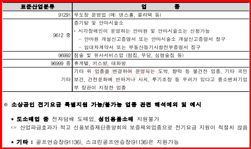사행성 업종, 성인용품, 약국, 유흥주점, 금융업종 등이 제외됩니다. 그러나 제외 업종이라 하더라도 연매출 6천만원 이하일 경우 지원이 가능합니다.