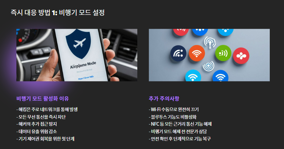 - 비행기 모드를 켜서 모든 통신을 끊는 것이 1차 조치입니다.