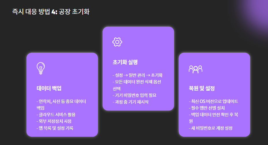 - 가장 확실한 해킹 차단 방법은 스마트폰을 공장 초기화하는 것입니다.