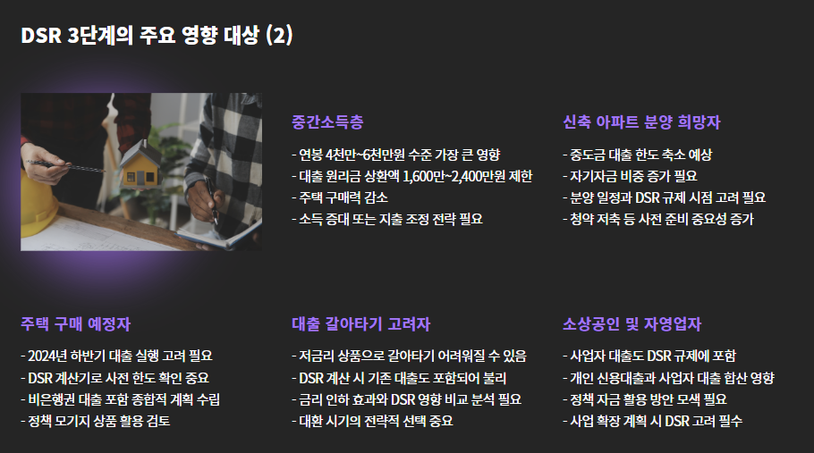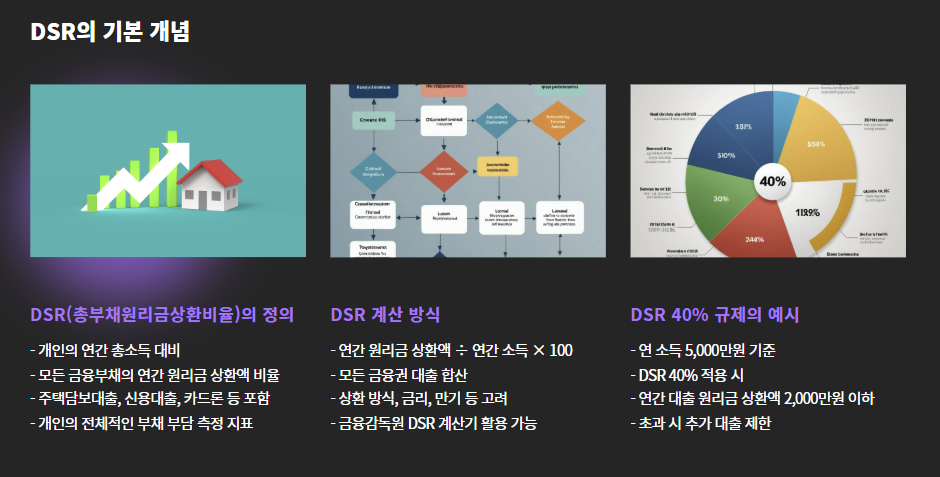 - 기존에는 주택담보대출 한도 위주로 관리되던 DSR 규제가
