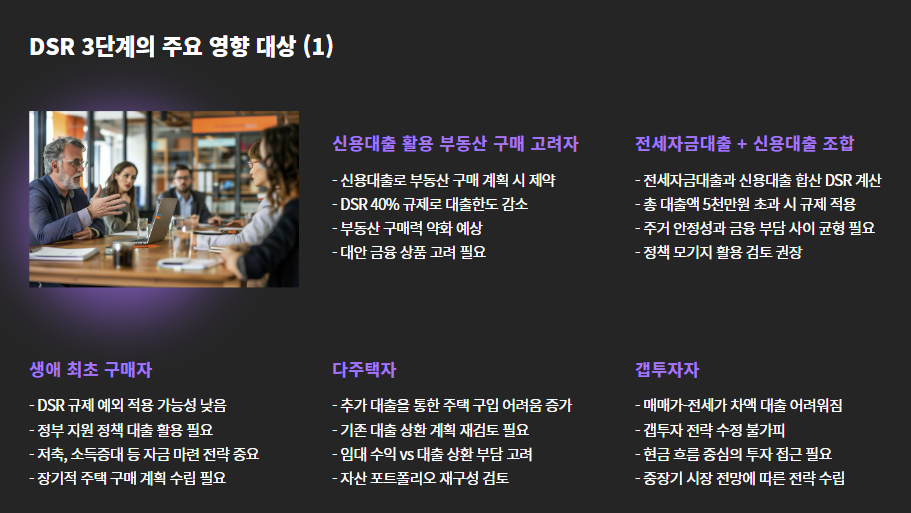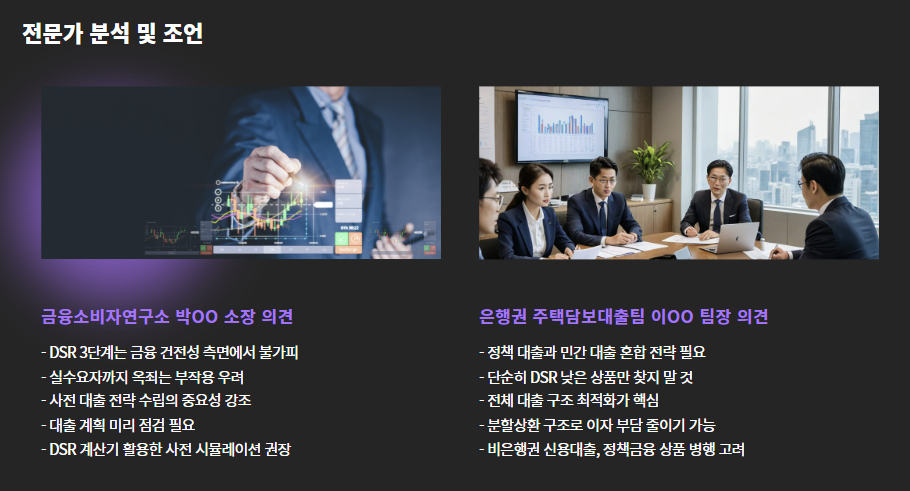 “DSR 3단계는 금융 건전성 측면에서 불가피하지만, 실수요자까지 옥죄는 부작용이 우려됩니다. 사전 대출 전략 수립이 더욱 중요해졌습니다.”
