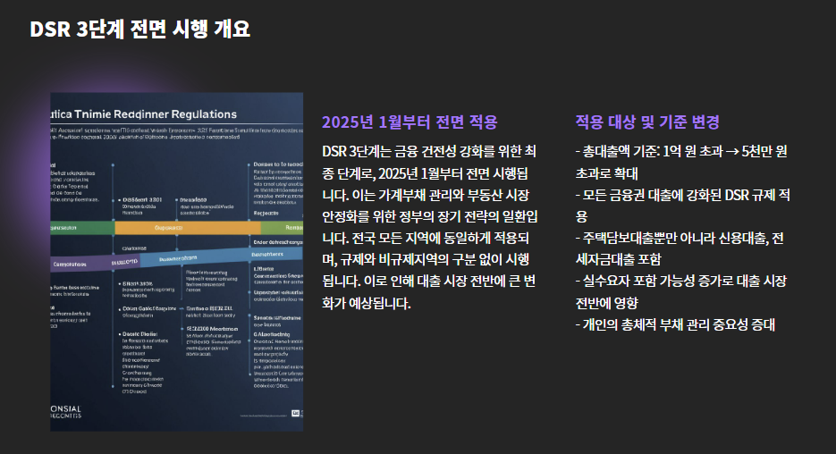| 3단계 (최종) | 2025년 7월 | 총 대출 5천만 원 초과 | 전면적용, 실수요자 포함 가능성 증가 |