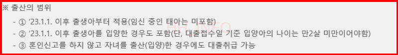 - 대출 신청 시점 기준 2년 이내에 출산한 무주택 세대주