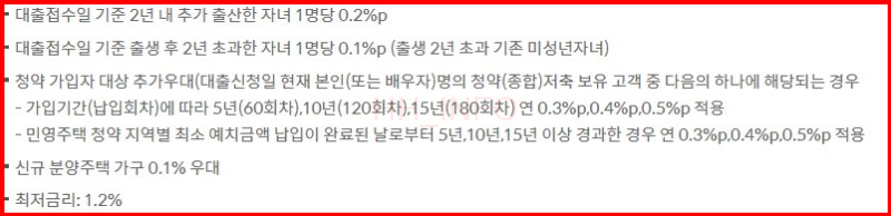 다양한 우대조건을 충족하는 경우, 신생아특례대출의 금리를 더욱 낮출 수 있습니다: