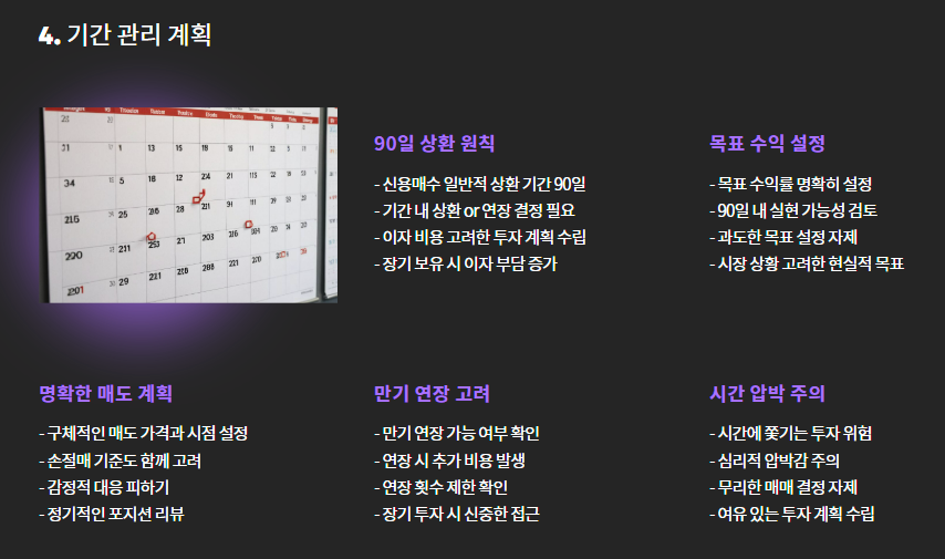 | 기간 관리 | 90일 내 투자 계획 수립 |