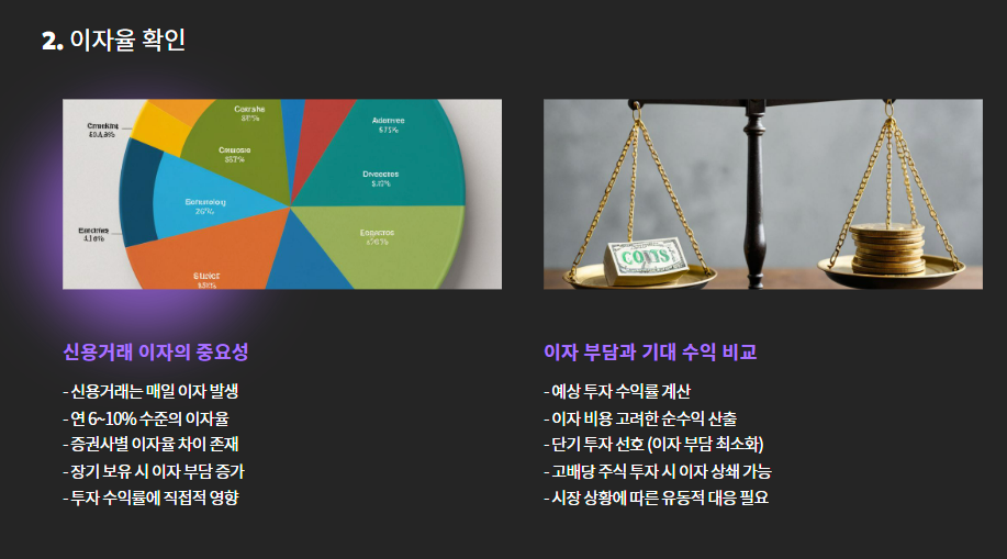 - 이용 중인 증권사의 신용거래 이자율(연 6~10% 수준)