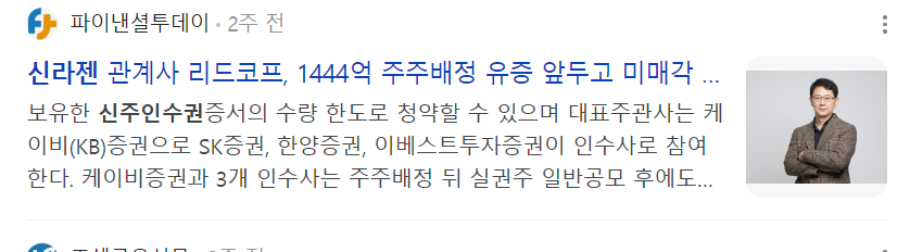 신주인수권 설명 - 신라젠22R 매도 행사 가격 거래 가격