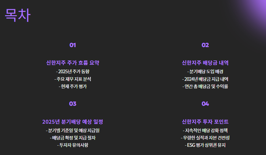 이번 글에서는 신한지주의 주가 동향, 2025년 분기배당 예상일정, 배당수익률, 그리고 투자 시 고려할 포인트까지 깔끔하게 정리해드릴게요.