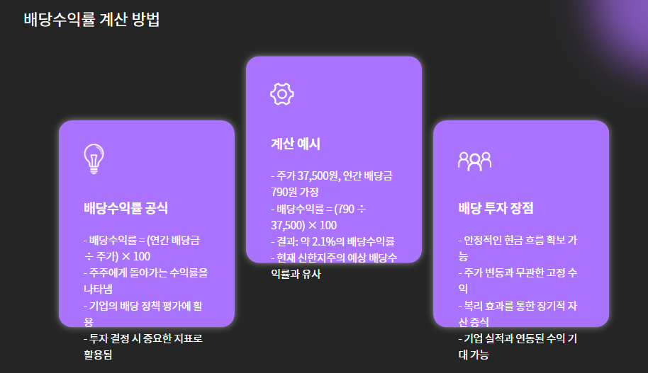 - 예: 주가가 37,500원, 연간 배당금이 790원이면