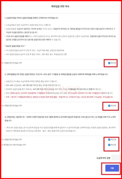실업인정을 받기 위해서는 정부24 사이트에서 신청을 해야 합니다. 로그인 후 실업인정 인터넷 신청 메뉴에서 재취업을 위한 약속과 실업급여 부정수급 고지 확인서를 확인하고, 구직활동 외 구직 사항에서 온라인 취업특강 프로그램을 선택해 신청하면 됩니다.