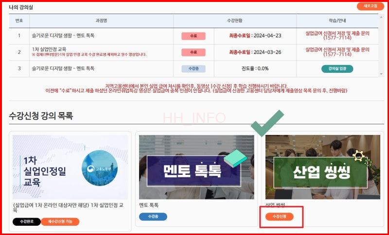 취업특강 프로그램은 실업급여를 받기 위한 필수 요소 중 하나입니다. 고용24 사이트에서 제공하는 다양한 동영상 교육 중 하나를 선택해 수강 신청하면 됩니다. 수강 완료 후에는 구직활동 증빙 자료로 활용할 수 있습니다.
