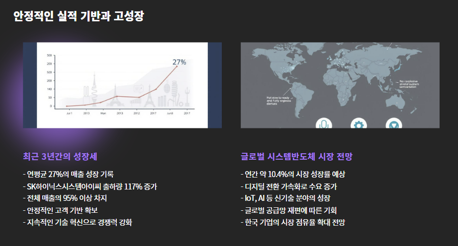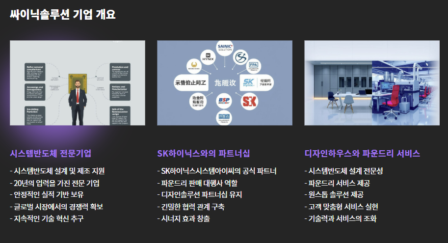 특히 SK하이닉스시스템아이씨의 공식 파운드리 판매 대행사이자 디자인솔루션 파트너로, SK하이닉스와의 긴밀한 연결고리가 강점으로 작용하고 있습니다.