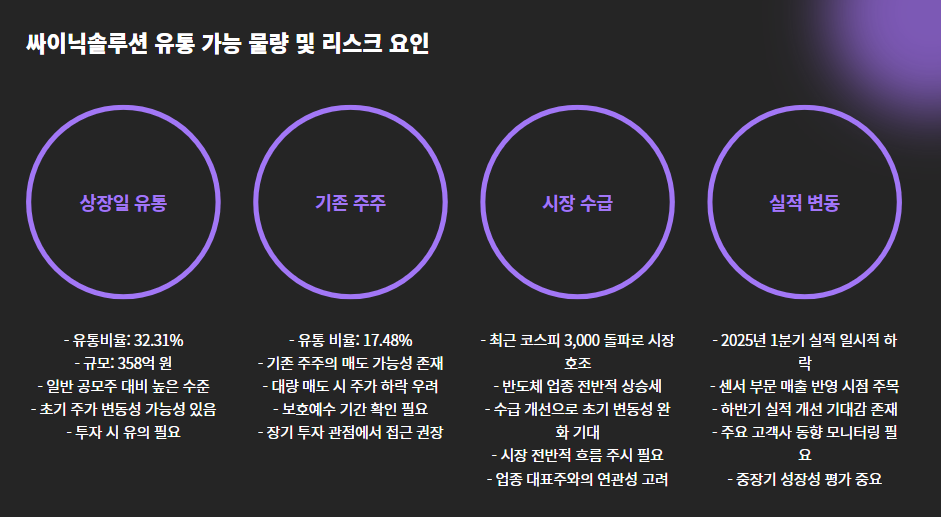 공모주 유통 물량보다 기존 주주 비중이 높은 점은 소폭 리스크로 작용할 수 있으나, 최근 시장 수급이 좋아 큰 영향을 미치지 않을 가능성도 존재합니다.