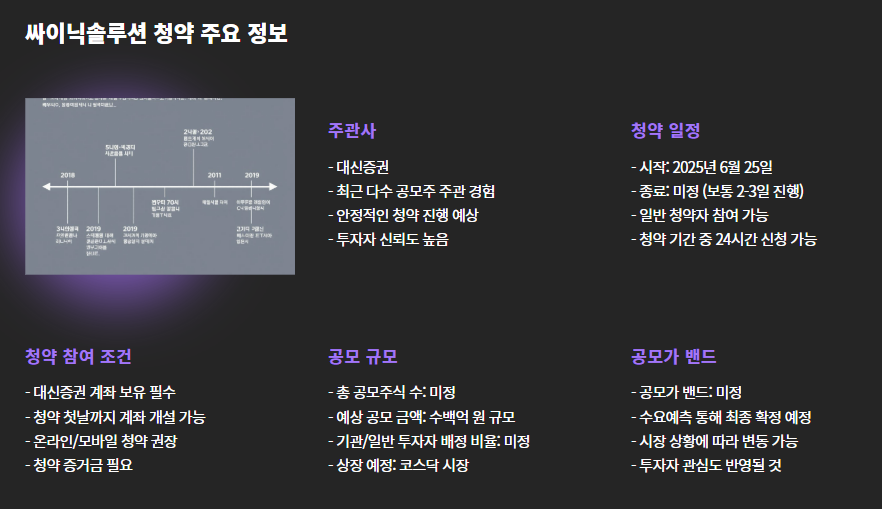 싸이닉솔루션 청약정보 총정리 (2025년 6월 25일 기준)