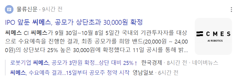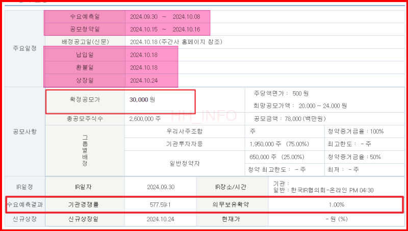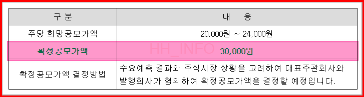 - 공모가: 30,000원 (희망밴드 상단보다 25% 높음)