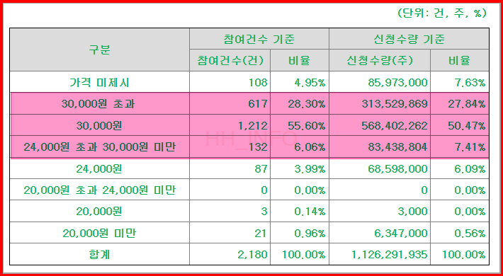 - 참여 기관의 약 90%가 공모가 상단인 24,000원 이상으로 제시