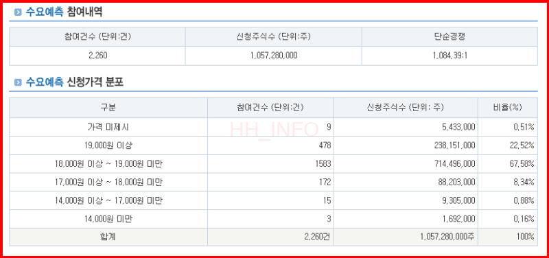 이번 씨어스테크놀로지의 공모주 청약 주관사는 한국투자증권으로, 수요예측일은 5월 27일부터 5월 31일까지였어요. 청약일은 6월 10일과 11일, 상장 예정일은 6월 19일입니다. 확정 공모가는 17,000원으로, 수요예측 결과 1084.39:1의 높은 경쟁률을 기록했답니다.