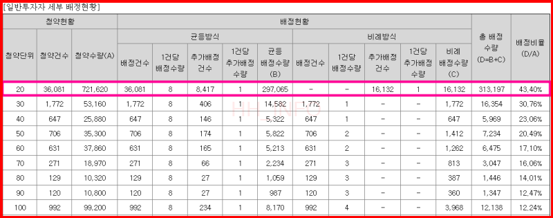 - 균등 배정으로 8~9주가 배정되었으며, 최소 청약 주식수인 20주를 청약한 계좌의 약 43.4%가 비례 1주를 배정받았습니다.