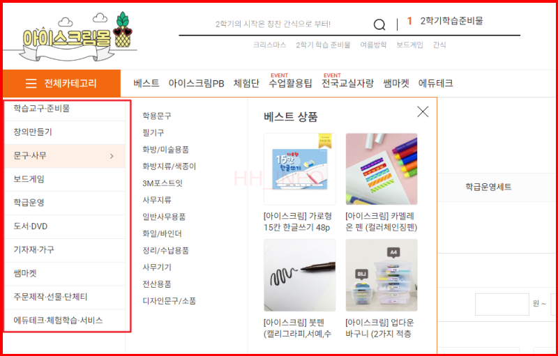 특히 '아이스크림s' 플랫폼에 연동된 '아이스크림몰'에서 교구재를 판매하는 커머스 사업이 주목받고 있습니다. 2023년 기준으로 아이스크림몰은 교육쇼핑몰 시장에서 압도적인 점유율을 기록하고 있습니다. 다만, 이 시장의 성장 가능성은 학교에 배정된 교육부 예산에 달려 있으며, 저출산으로 인해 학급 수가 감소하는 현상이 걸림돌이 될 수 있습니다.