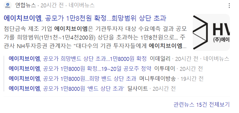 에이치브이엠, 공모가 1만8천원 확정…희망범위 상단 초과 | 연합뉴스