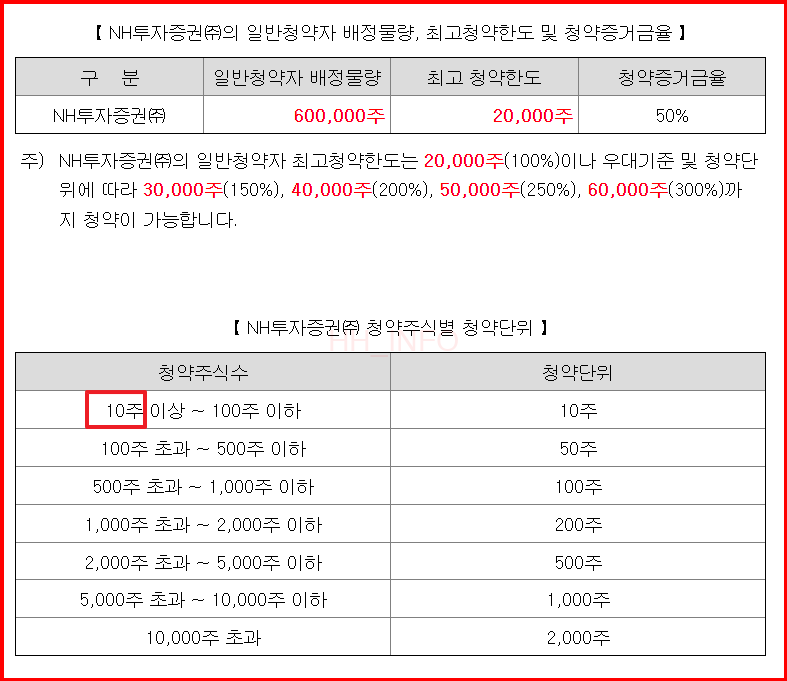 에이치브이엠 공모주 청약에 참여하기 위해서는 NH투자증권 계좌가 필요합니다. 청약 기간에도 개설 가능하고, 미성년자는 18일까지 개설 필요해요. 최소 청약주식수는 10주로, 최소청약증거금은 9만원입니다. 일반청약자 최고청약한도는 20,000주이니 참고하세요.
