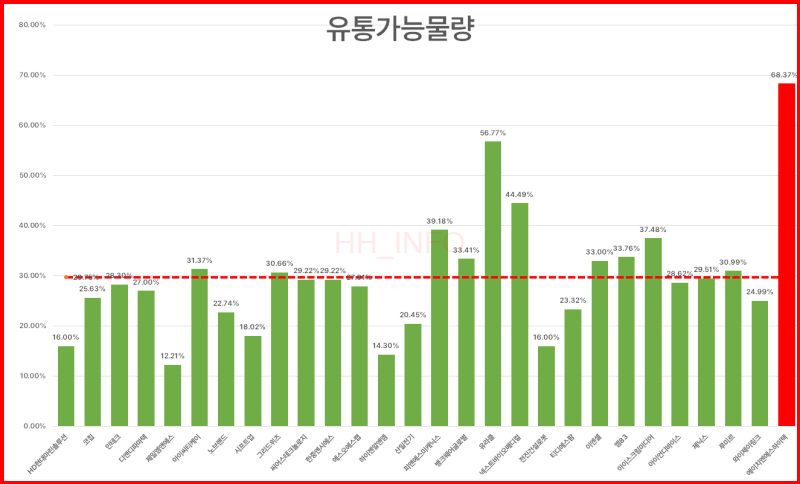 - 유통 가능 물량 비율: 68.37%로 매우 높은 편