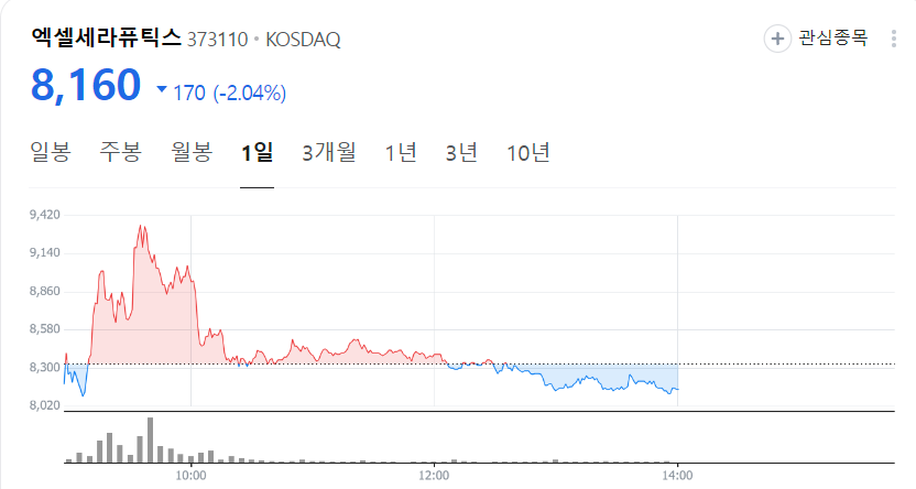 [특징주] 엑셀세라퓨틱스, 코스닥 상장 첫날 10%대 상승