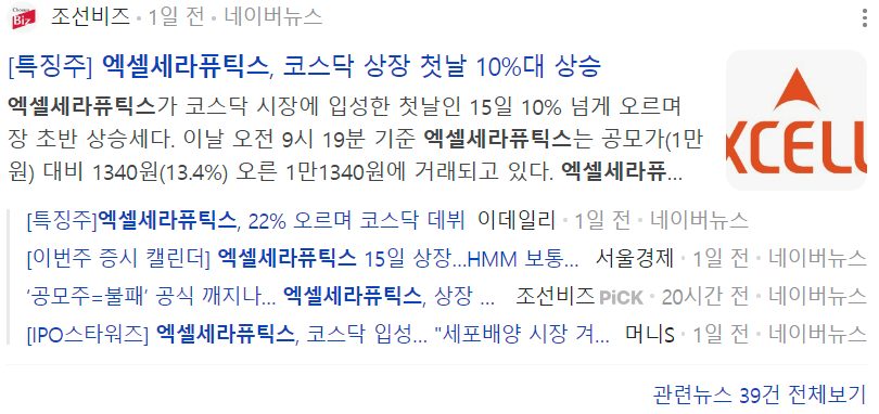 7월 15일은 엑셀세라퓨틱스의 상장일입니다. 엑셀세라퓨틱스는 세포 배양 배지를 개발하고 제조하는 회사로, 아직 영업이익은 적자인 기업입니다. 이번 상장을 통해 공모가 10,000원으로 대신증권을 통해 상장하게 되었습니다.