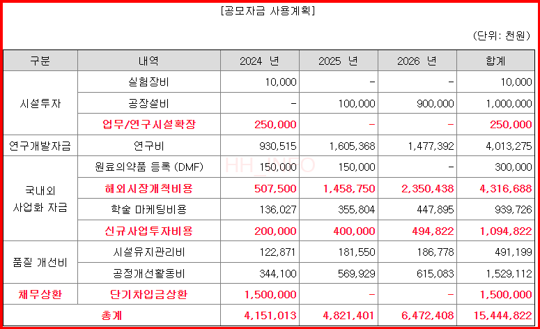 이번 IPO를 통해 들어오는 자금은 채무 상환과 운영 자금 등으로 사용될 계획입니다. 자본잠식 기업이므로 자금 수혈이 매우 필요한 상황입니다.