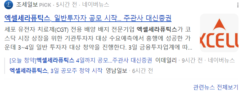 오늘부터 기술특례기업으로 상장하는 엑셀세라퓨틱스의 공모주 청약이 시작됩니다. 이틀간의 포스팅을 통해 청약 일정을 안내드리겠습니다.