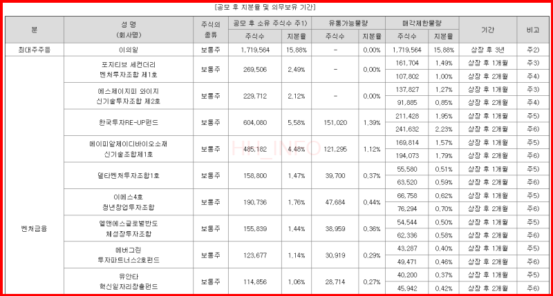 의무보유확약비중은 4.5%로 낮은 편입니다.