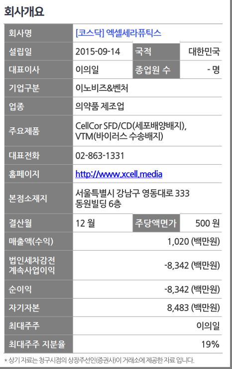 엑셀세라퓨틱스 회사 소개