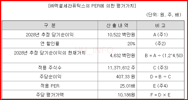 엑셀세라퓨틱스는 기술특례기업으로 상장하며, 2028년 예상 영업이익을 기준으로 주당 평가가액을 계산했습니다. 그러나 개인적으로는 예상 영업이익 달성이 어려울 것으로 보입니다. 공모가가 10,000원으로 할인율이 없으며, 청약 수수료와 인수 수수료가 추가됩니다.