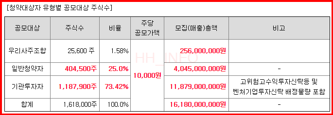 - 총공모주식수: 1,618,000주 (개인투자자 물량 - 404,500주)
