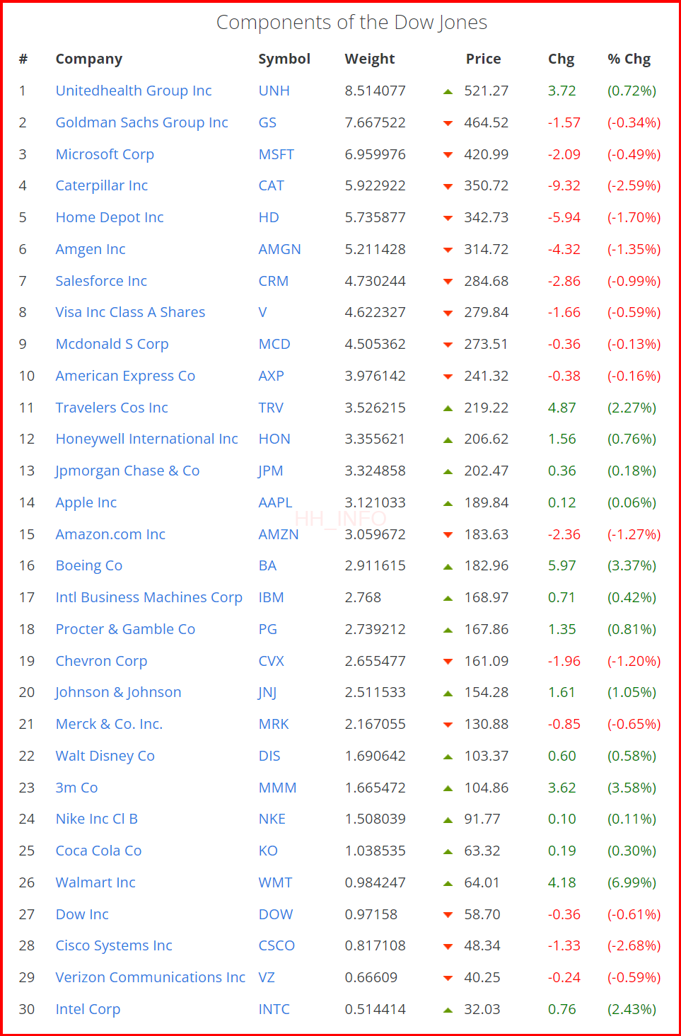 다우지수는 미국을 대표하는 30개 기업을 포함하고 있지만, IT 관련 거대 기업이 많이 포함되어 있지 않습니다. 최근에는 애플, 아마존, IBM, 인텔, 마이크로소프트 등이 편입되었으며, 이들의 주가는 평균적으로 200달러 내외입니다. 엔비디아가 주가를 낮추면 다우지수에 편입될 가능성이 커지게 됩니다.