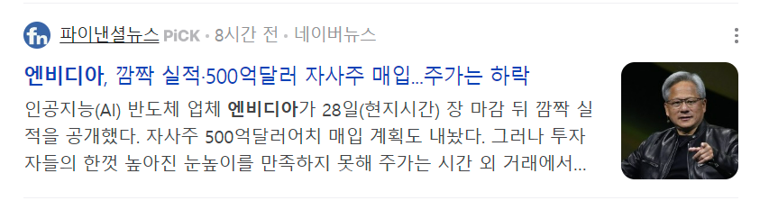 - 이미 반영된 높은 기대치: 엔비디아의 실적이 뛰어났지만, 이미 주가는 이러한 기대를 반영한 상태였습니다. 따라서 실적이 좋았음에도 불구하고 더 이상의 상승 여력이 부족하다고 판단된 것입니다.