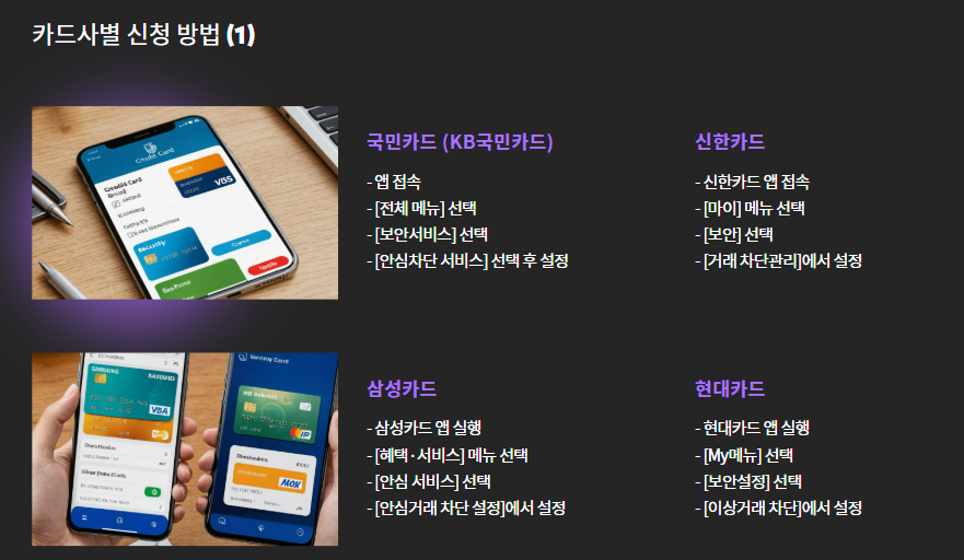 2. 카드사별 신청 방법 (모바일 기준)