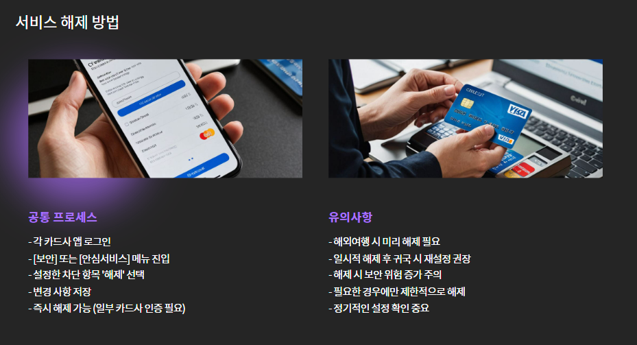 ※ 즉시 해제 가능하며, 일부 카드사는 인증 필요