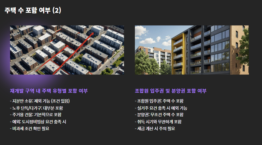 | 조합원 입주권 보유자 | ✅ 주택 수 포함됨 | 단, 주택 수 제외 요건 따로 있음 |