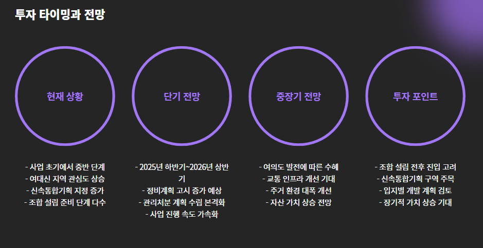 - 2025년 하반기~2026년 상반기: 정비계획 고시·관리처분 예정 구역 증가 전망