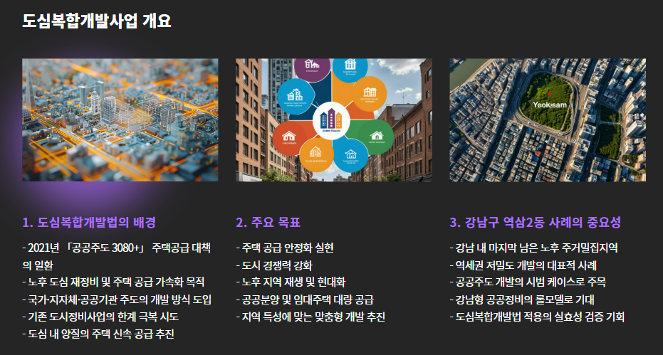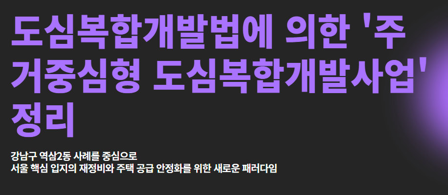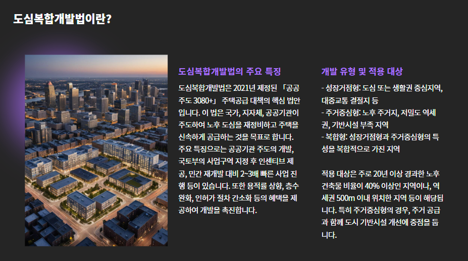 그 중심에는 바로 **‘도심복합개발법’**과 **‘주거중심형 도심복합개발사업’**이 있습니다.